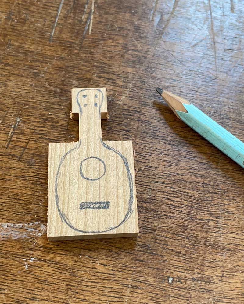 さっそく、下書きから。簡単そうなパイナップル型のウクレレにしてみる。