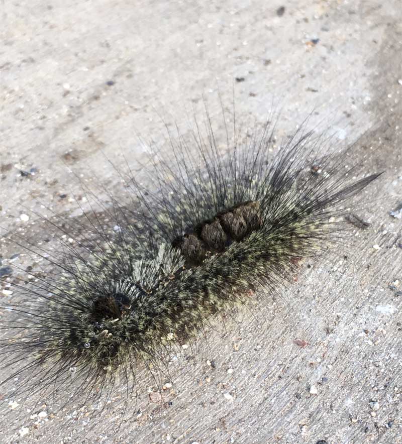 調べてみるとアカヒゲドクガの幼虫のようだ。ドクガと名前がつくからには危険かと思いきや毒はないそうだ。
