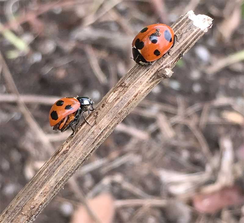 一旦朝食に戻って、また圃場へ。圃場の西側の畑がかなり荒れてきたので石を片付けたり、剪定。枯れ草を片付けたらてんとう虫がたくさん出てきた。
